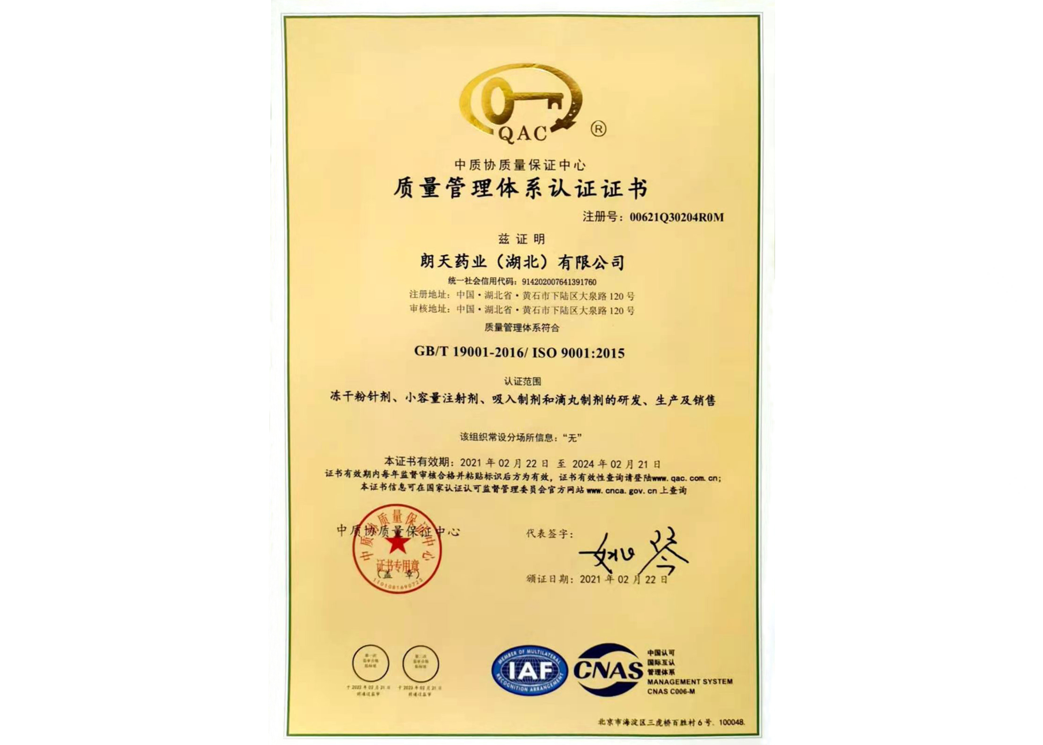 質(zhì)量管理體系認(rèn)證證書(shū)