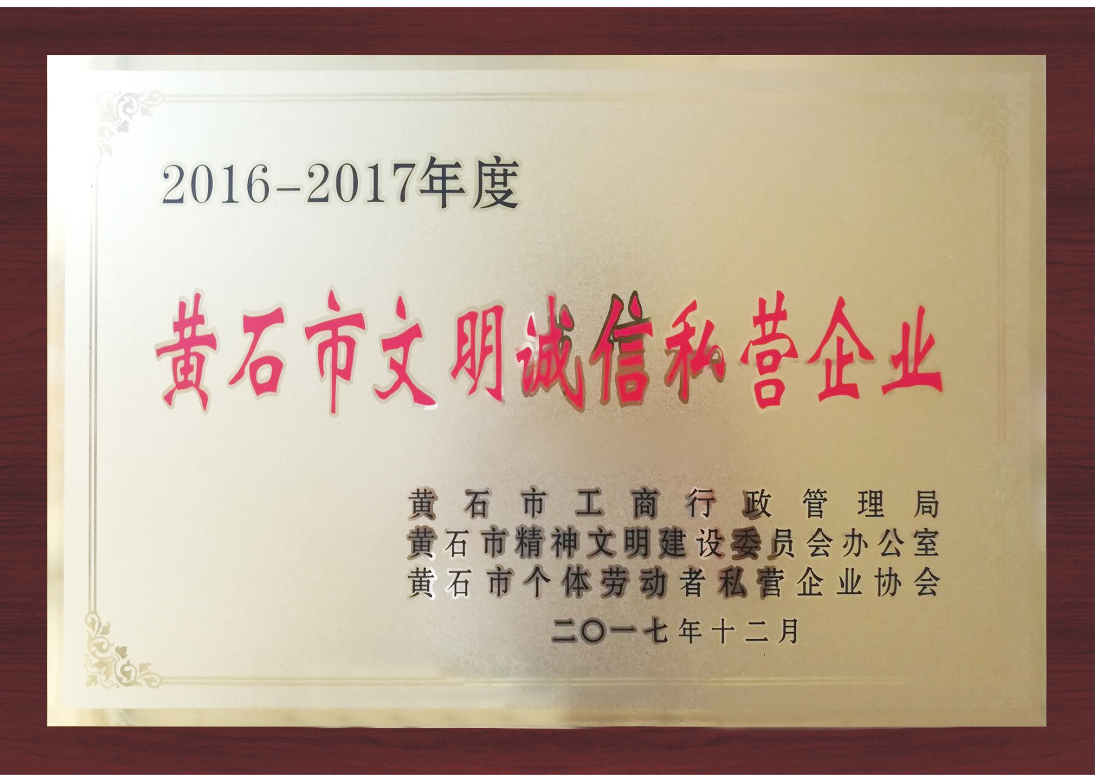 黃石市文明誠信私營企業(yè)