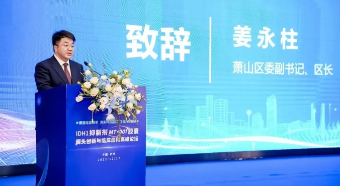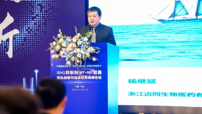 2023年12月12日,由浙江邁同生物醫(yī)藥有限公司主辦的"IDH1抑制劑MT-001源頭創(chuàng)新與臨床應(yīng)用高峰論壇"在杭州蕭山江南·科技城創(chuàng)業(yè)谷隆重舉行。此次論壇匯集了國內(nèi)外生物醫(yī)藥領(lǐng)域的院士、專家學者、政府領(lǐng)導(dǎo)、企業(yè)代表、深耕生物醫(yī)藥領(lǐng)域的投資者及社會各界人士,以源頭創(chuàng)新的MT-001膠囊臨床正式進入臨床試驗階段為契機,深入探討源頭創(chuàng)新的藥物研究與以臨床為導(dǎo)向、使患者獲益的藥物開發(fā)。