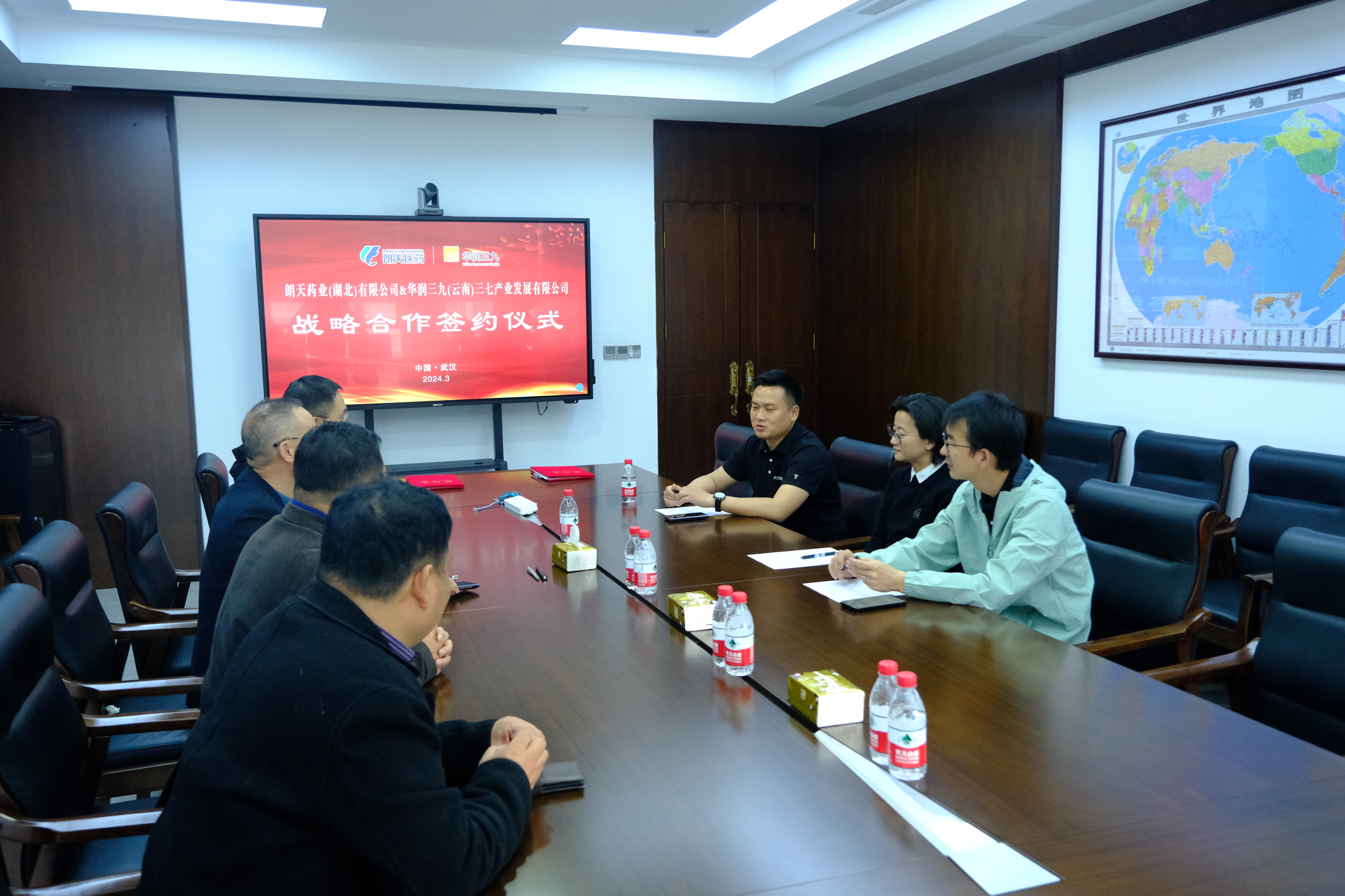 3月14日,朗天藥業(yè)(湖北)有限公司與華潤三九(云南)三七產(chǎn)業(yè)發(fā)展有限公司高層就“三七總皂苷”原料供應事宜在朗天醫(yī)藥集團武漢總部舉行座談會并簽訂戰(zhàn)略合作協(xié)議。集團董事長蔡翔,華潤三九(云南)三七公司副董事長黃輝洪、總經(jīng)理王平等出席會議。