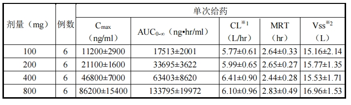 ![]() ![]() ※:中位值(90%預(yù)測范圍),使用基于群體藥代動力學(xué)分析軟件 NONMEM®的藥代動力