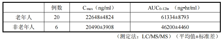 對健康老年受試者(65 歲以上)20 例、健康非老年受試者 6 例單次靜脈滴注 4mg/kg 注