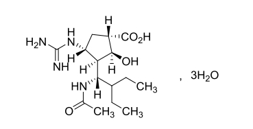 化學(xué)名稱:(1S,2S,3R,4R)-3-[(1S)-1-乙酰氨基-2-乙基丁基]-4-胍基-2-羥基環(huán)戊烷-1-羧酸三水合物