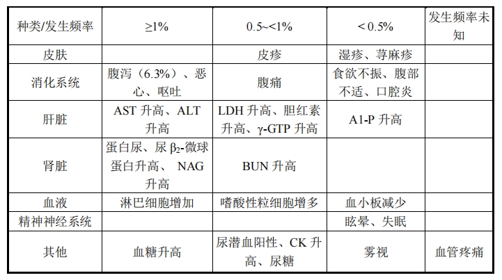 根據(jù)國外文獻(xiàn)報道的不良反應(yīng):