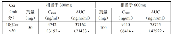 表 6 包括腎功能損害患者的藥代動力學(xué)參數(shù)