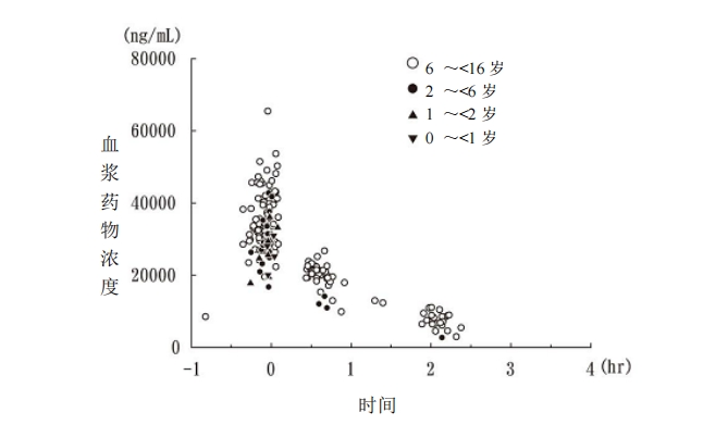 ![]() 圖 5 單次給藥時的血漿藥物濃度(兒科患者)