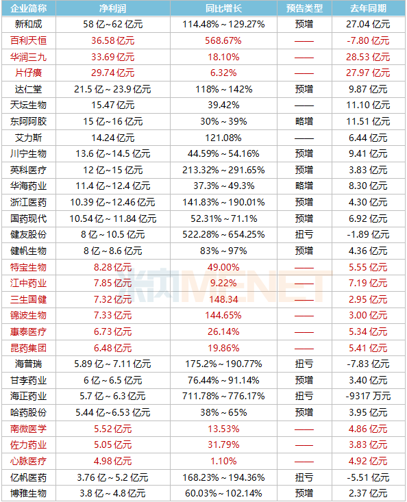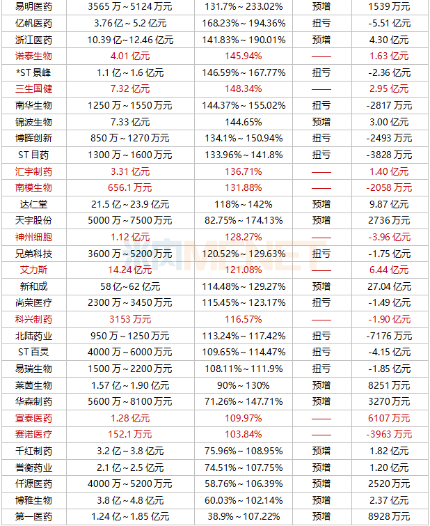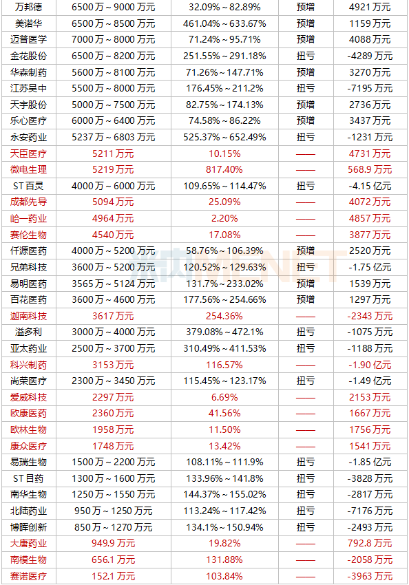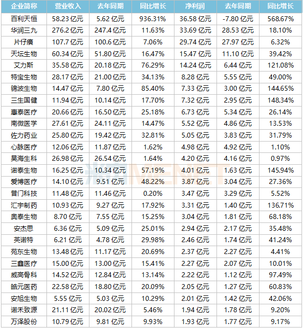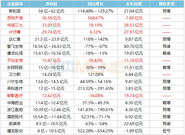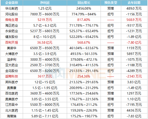 凈利潤(rùn)增幅超100%的醫(yī)藥企業(yè)